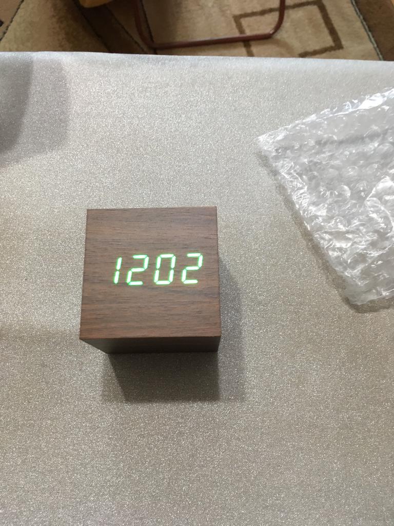 Digitální LED USB stůl Dřevěný čtvercový budík Dekorace s hlasovým ovládáním