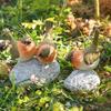 1. Rozkošná dekorativní socha ptáčka s uvítací cedulí - Dva ptáčci sedící na kameni se slovy "Vítejte v mé zahradě"