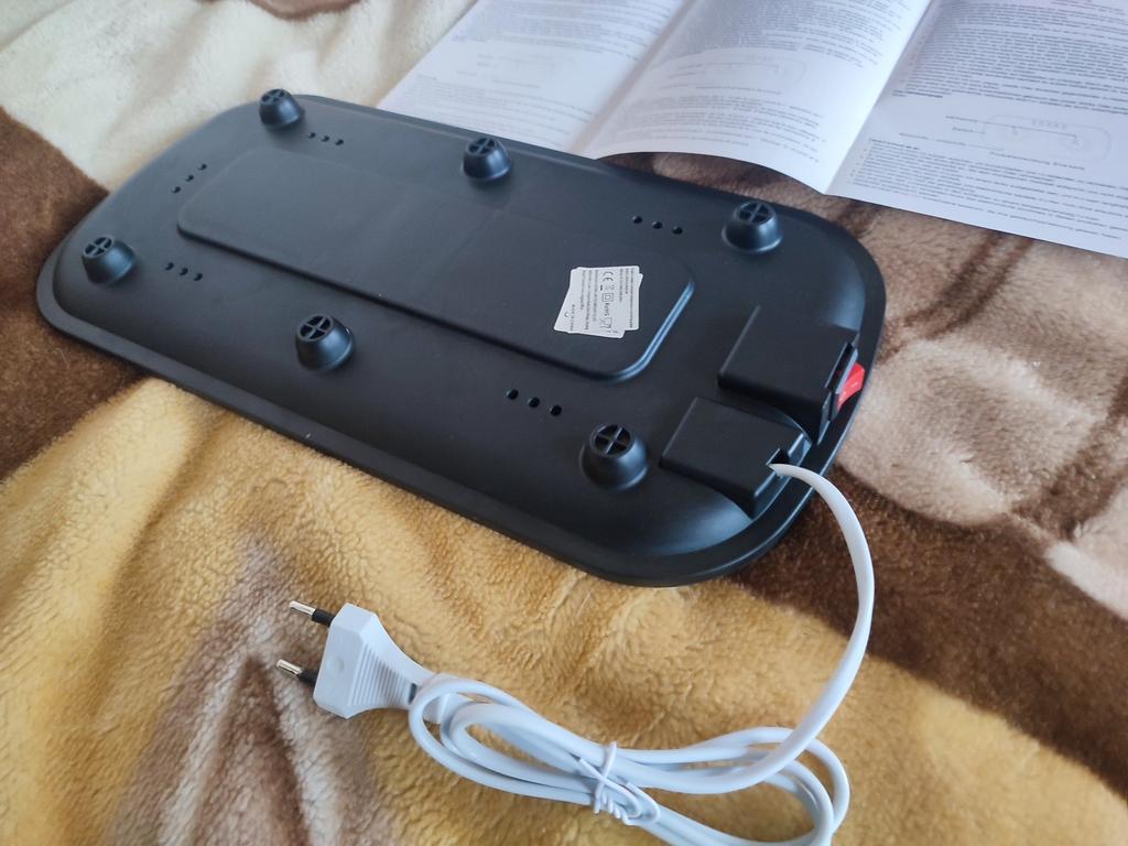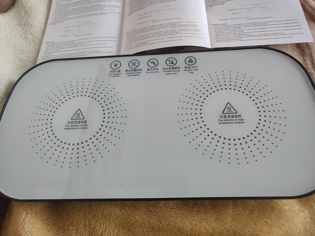 Elektricky vyhřívaný tác. Všechno funguje. Na boku je tlačítko napájení. Jsou tam instrukce v angličtině