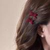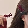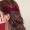 Simple Bow BB Clip Wine Red New Year Hair Clip Fall/Winter Side Clip New Bangs Clip Clip Headwear