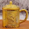 Starožitný reliéfní drak a příznivý šálek s tenkým pasem Dekorace čajového stolku Měděný šálek Čínský šálek s malým pasem