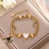 Original Design Exquisite Heart-Shaped White Mother-of-Pearl Bracelet, Double-Sided Wearable, 18K Gold Plated Titanium Steel for Women