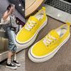 Leather one-pedal white shoes heightened platform casual canvas shoes women's spring and autumn new round head sports shoes