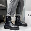 Fashion Size 38-46 Men's Fashionable High-Top Leather Boots Genuine Cowhide Shoes Side Zipper Thick-Sole Cowboy Boots for Everyday Wear