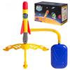 [Game 2: Kids' Toy Rocket Launcher] The rocket launcher uses a foot pad to push air through a tube. This creates a rapid increase in air pressure, allowing the rocket to launch. Kids can control the rocket's flight distance by adjusting the angle, jump force, and flight trajectory. The durable design and reliable construction can withstand endless hours of jumping, stomping, and play!