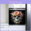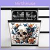 This modern minimalist PVC wall sticker features a Halloween-themed smiling skull with flowers and butterflies. Designed for decorative enhancement, it adds visual interest to living rooms, kitchens, or commercial spaces. Easy to apply and clean with a damp cloth, its ideal for creating a festive atmosphere.