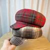 Octagonal Hat Women's Autumn and Winter Retro British Plaid Woolen Beret Versatile Newsboy Hat Trend