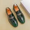 Fashionable Classic Green Men's Comfortable Thick Sole Anti Slip Loafers Brand Spring New Men Square Toe Wedding Business Shoes