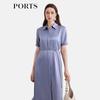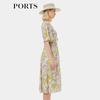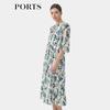 PORTS 2024 S/S White Blue Print A-line Midi Dress