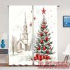 2pcs 2D flat printing Merry Christmas Popular Party Window Curtains Festive Red Church with Snow Scenery Versatile Polyester