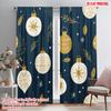 2pcs 2D flat printing Christmas Party Curtain Christmas red orange orbs with blue snowflakes and winter branches Versatile