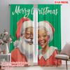 2pcs,2D plane printing Curtains Digital Printed Santa Please Stop Here Versatile Polyester Fabric (without rod) Decorations