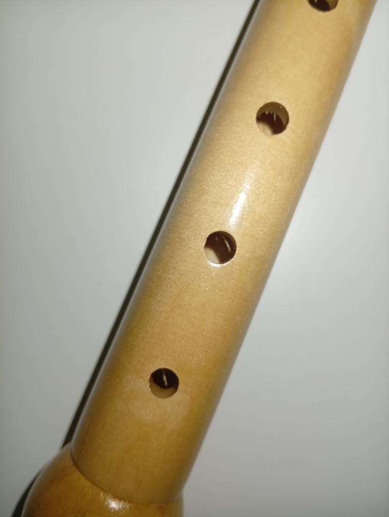 Die Flöte spielt normal, aber innen sind noch Holzspäne sichtbar. Außerdem fehlt im Set der Reinigungsstab für die Flöte.