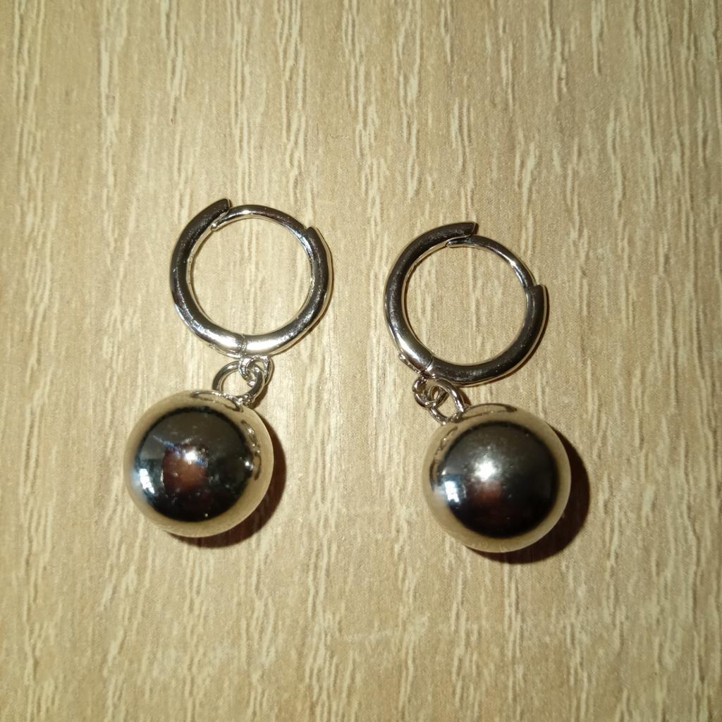 ANENJERY Metal Ball Pendant Hoop Earrings For Women Personal Simple Korea Niche All Match Jewelry