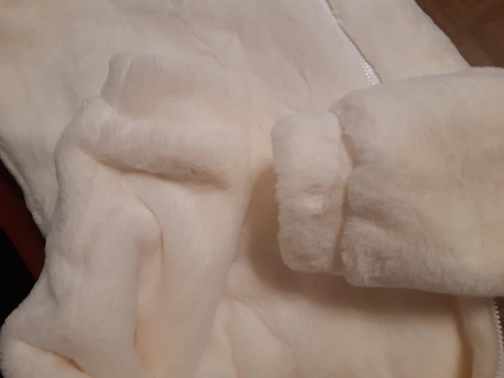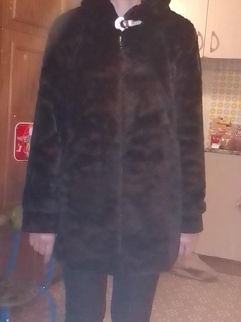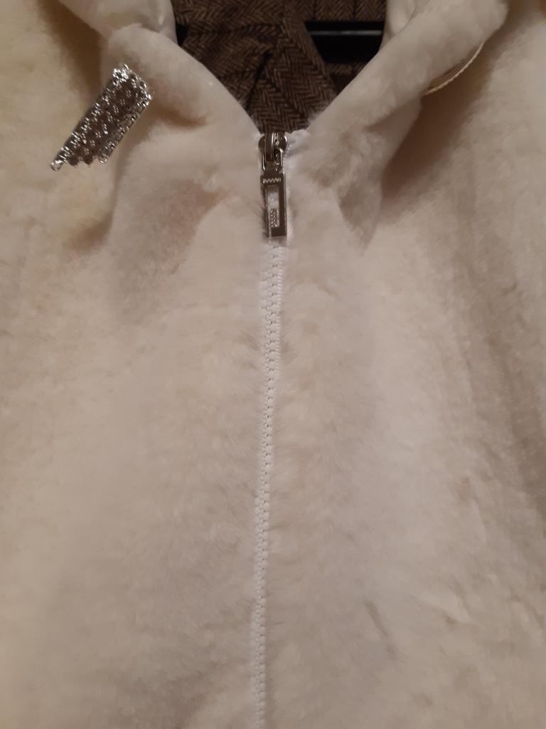 A soft, beautiful fur coat, but you can still see that it is artificial. It will suit young girls. There is a zipper in front, somehow flared down, it would be better if it was straight