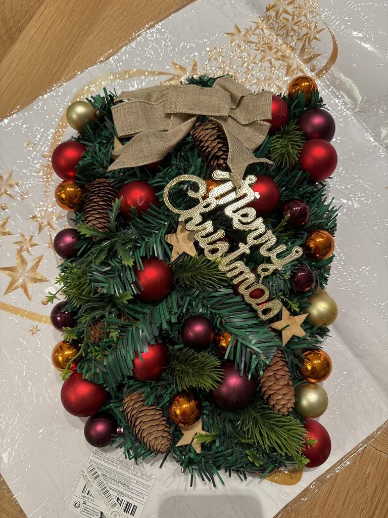 Christmas Wreath Artificial Bow Christmas Decoration Ball Garland Hanging Ornaments Front Door Wall Decor Xmas Tree Wreath