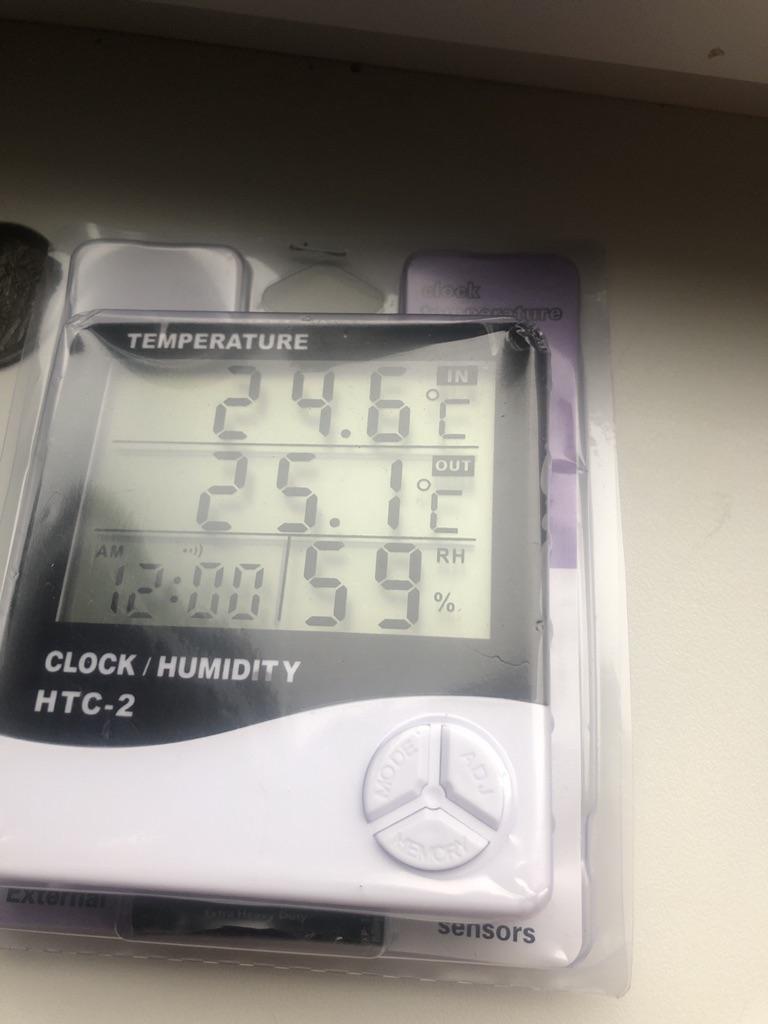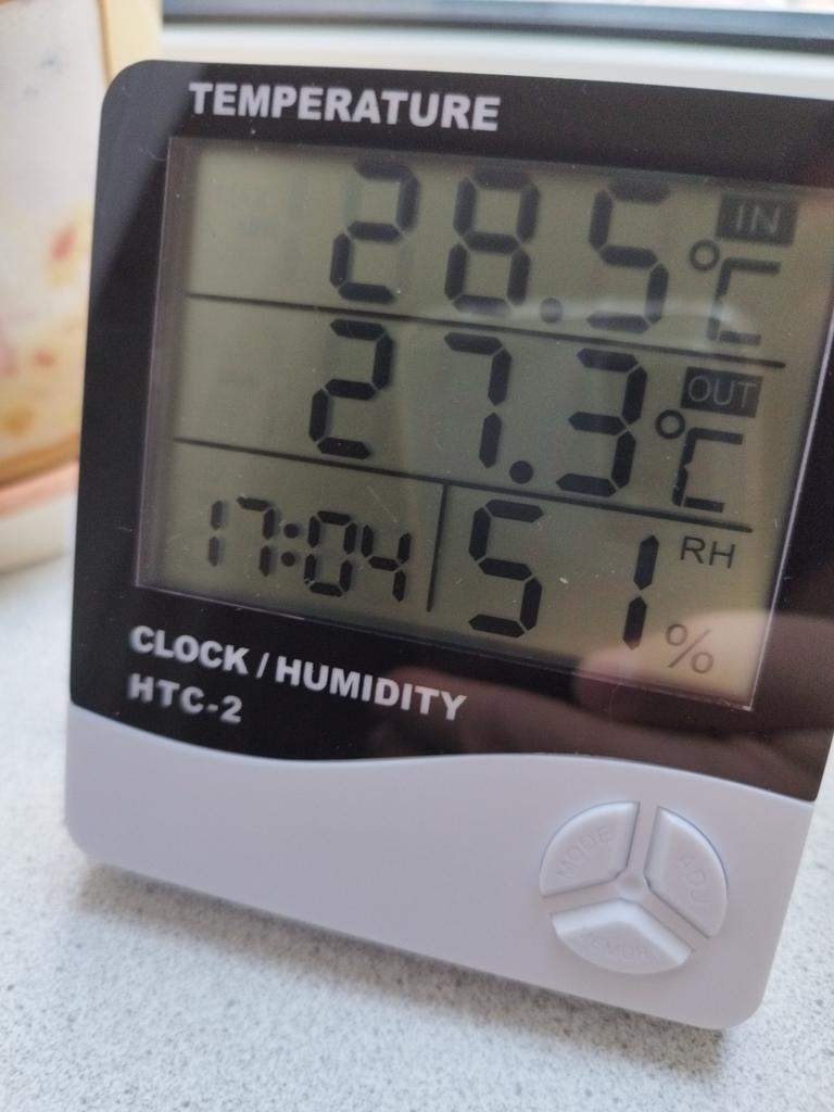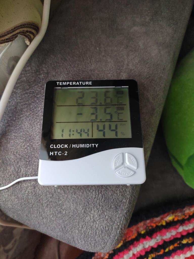 It's not clear yet. It shows 24 degrees inside and outside, and 10 degrees outside and 20 inside. It's not clear.