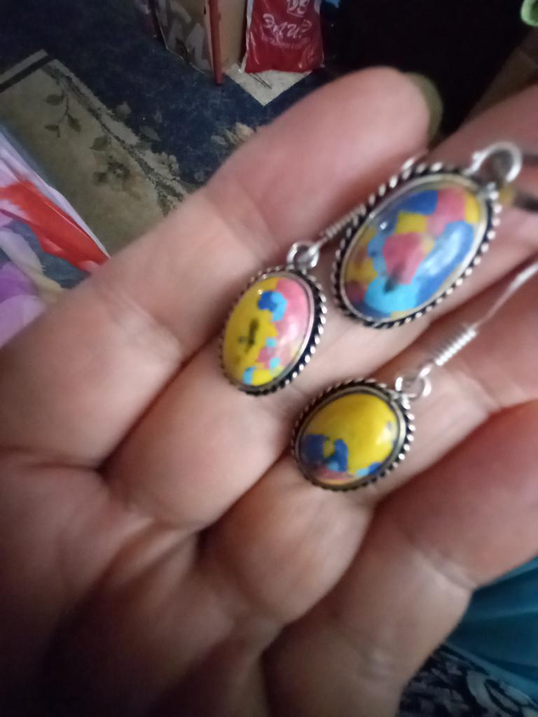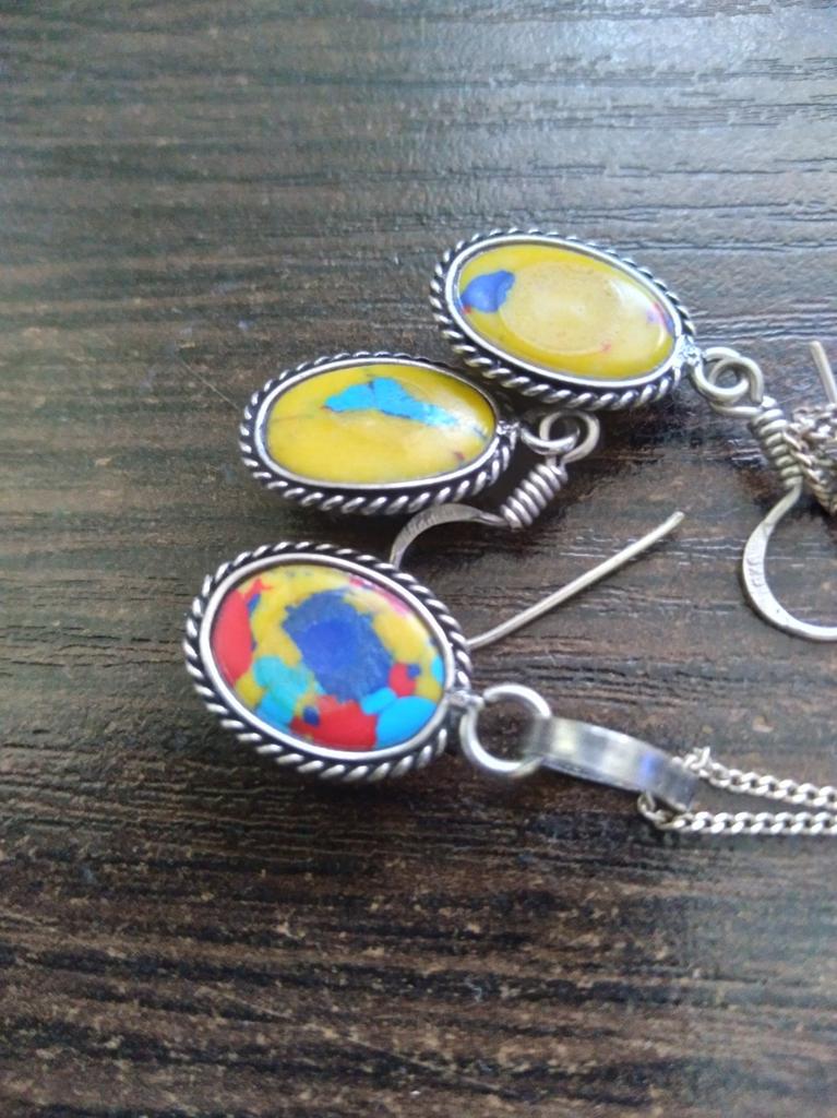 Mosaic Jasper Gemstone 925 Sterling Silver Plated Pendant Earring Set PES-S14