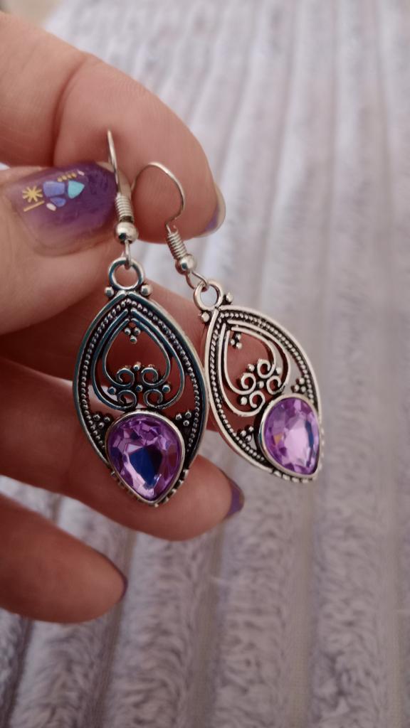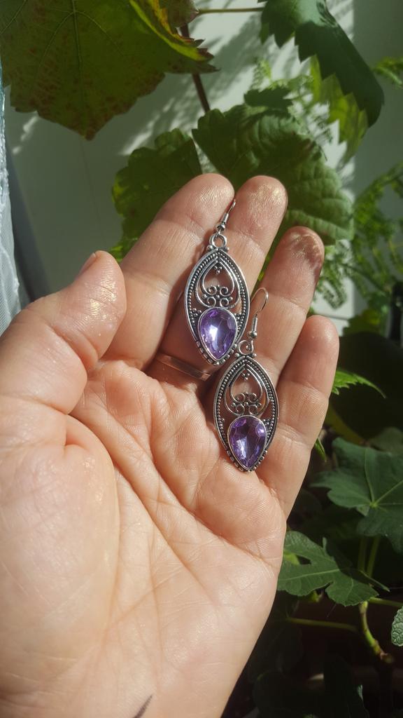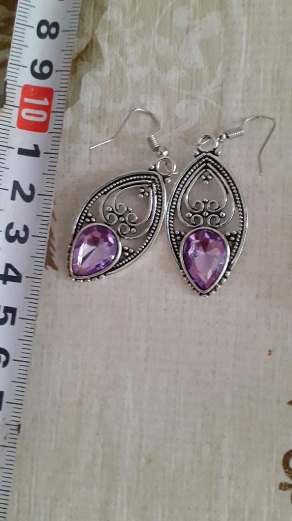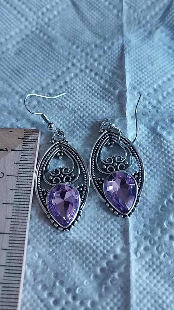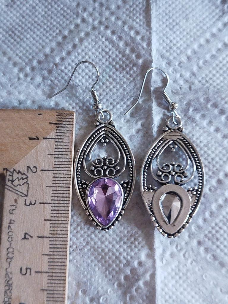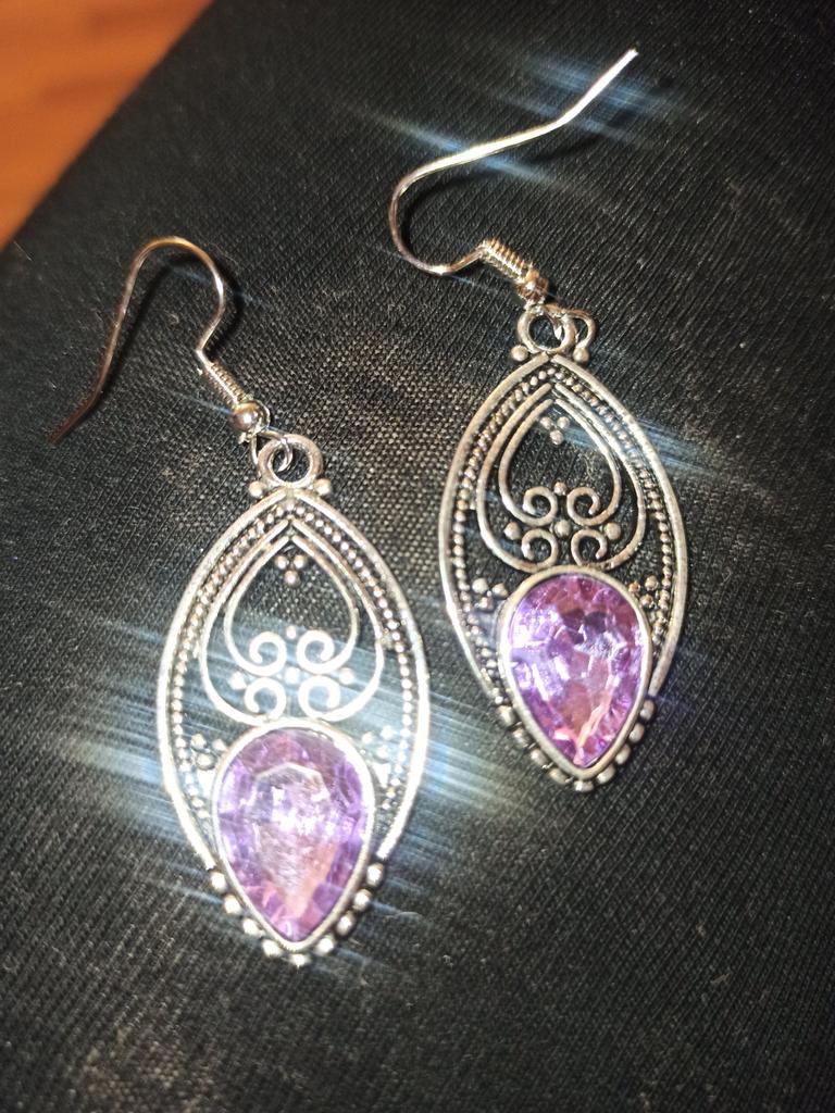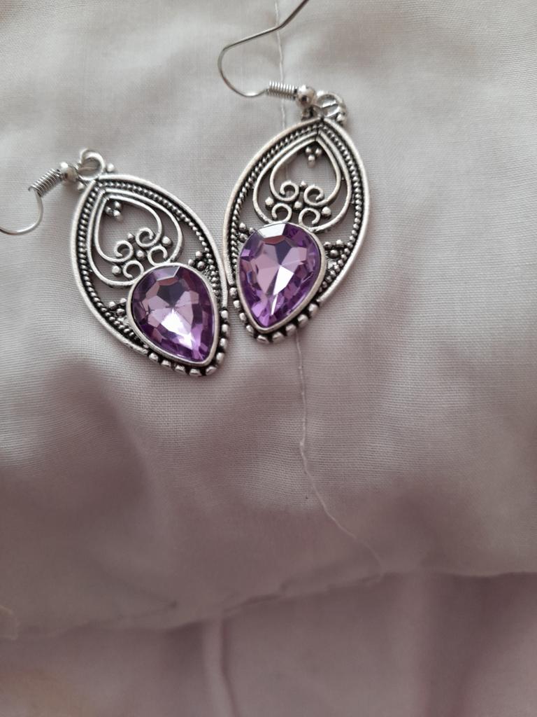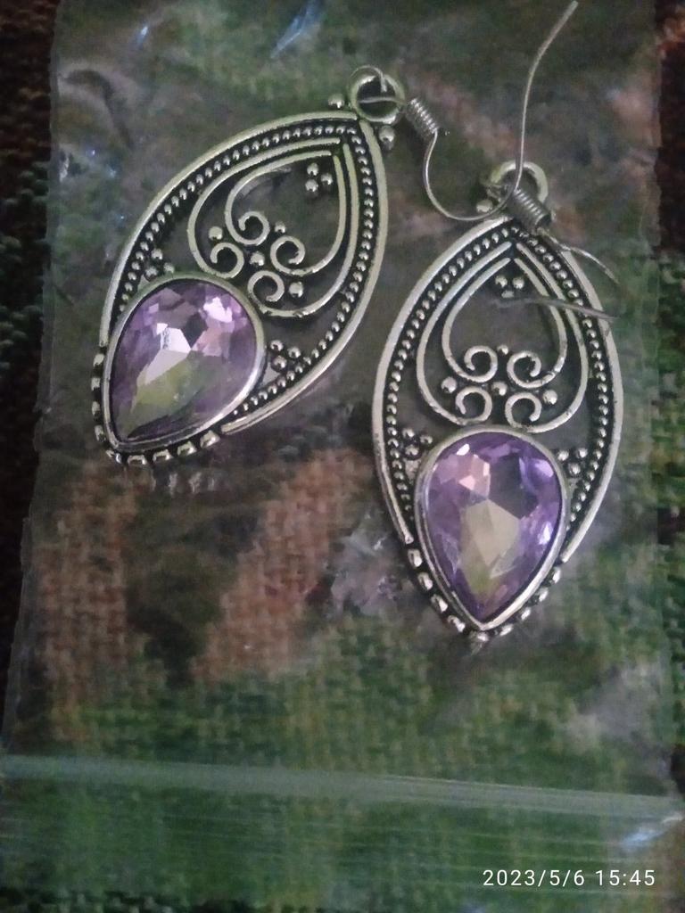 very delicate, beautiful light lilac color of the stone, the stone is glass, not acrylic, which also made me very happy)) quite large, 4x3.2 cm, but light on the ears, you can't feel them. very beautiful, I'm happy with the order) ❤️❤️