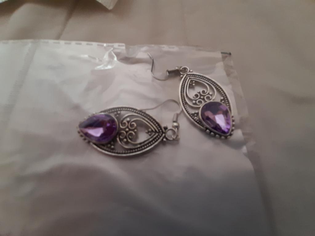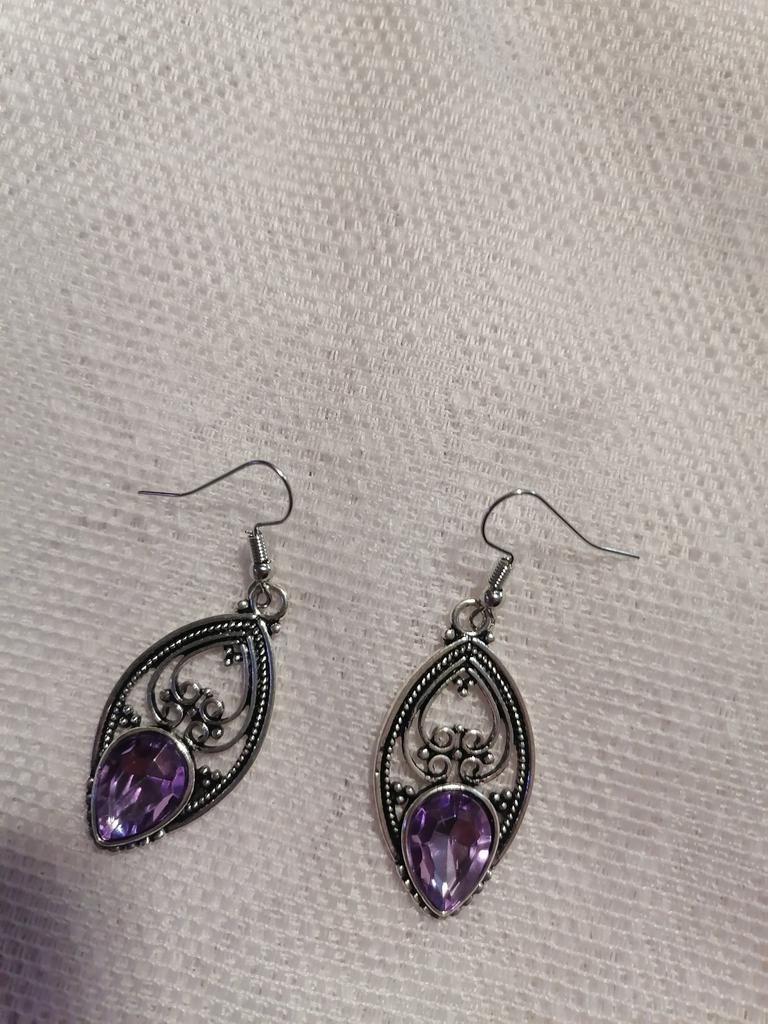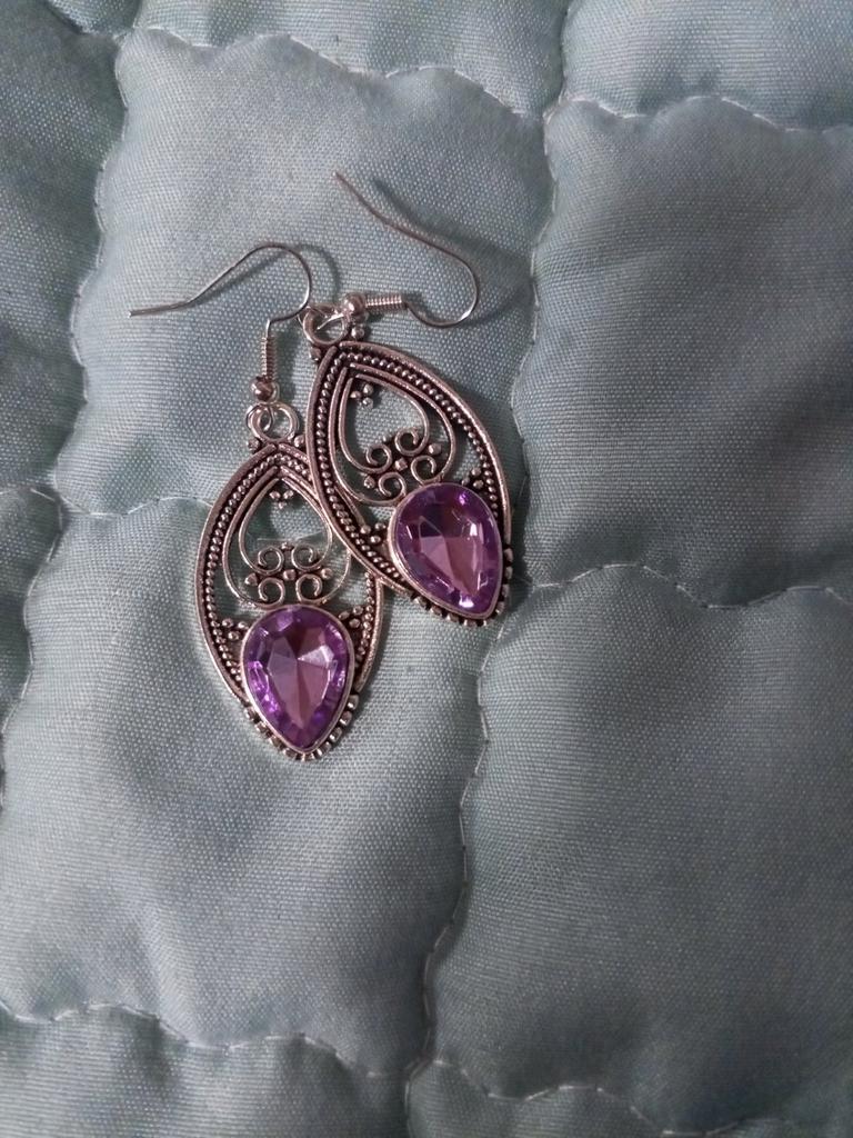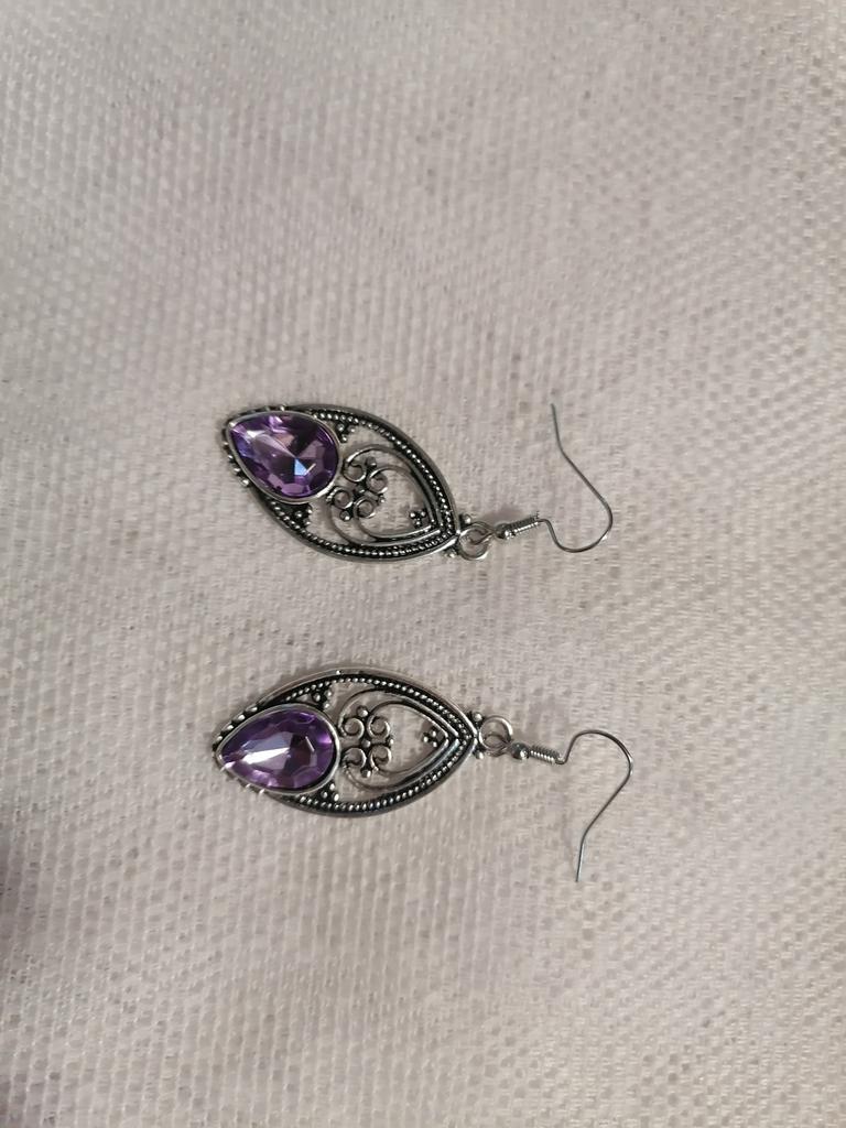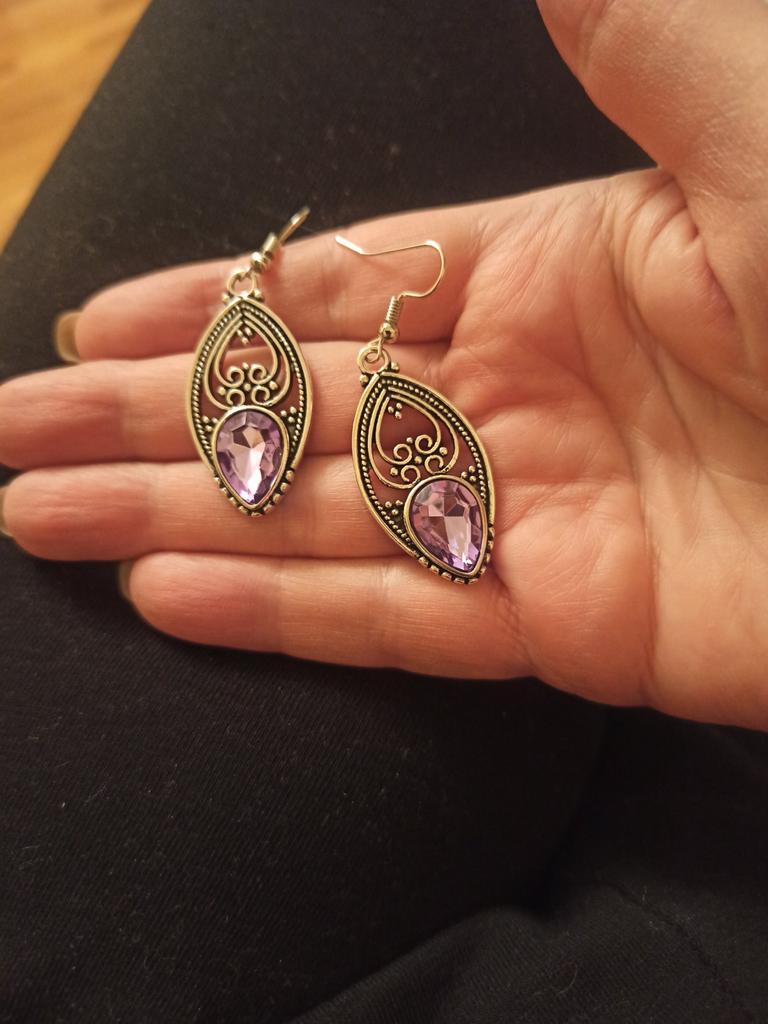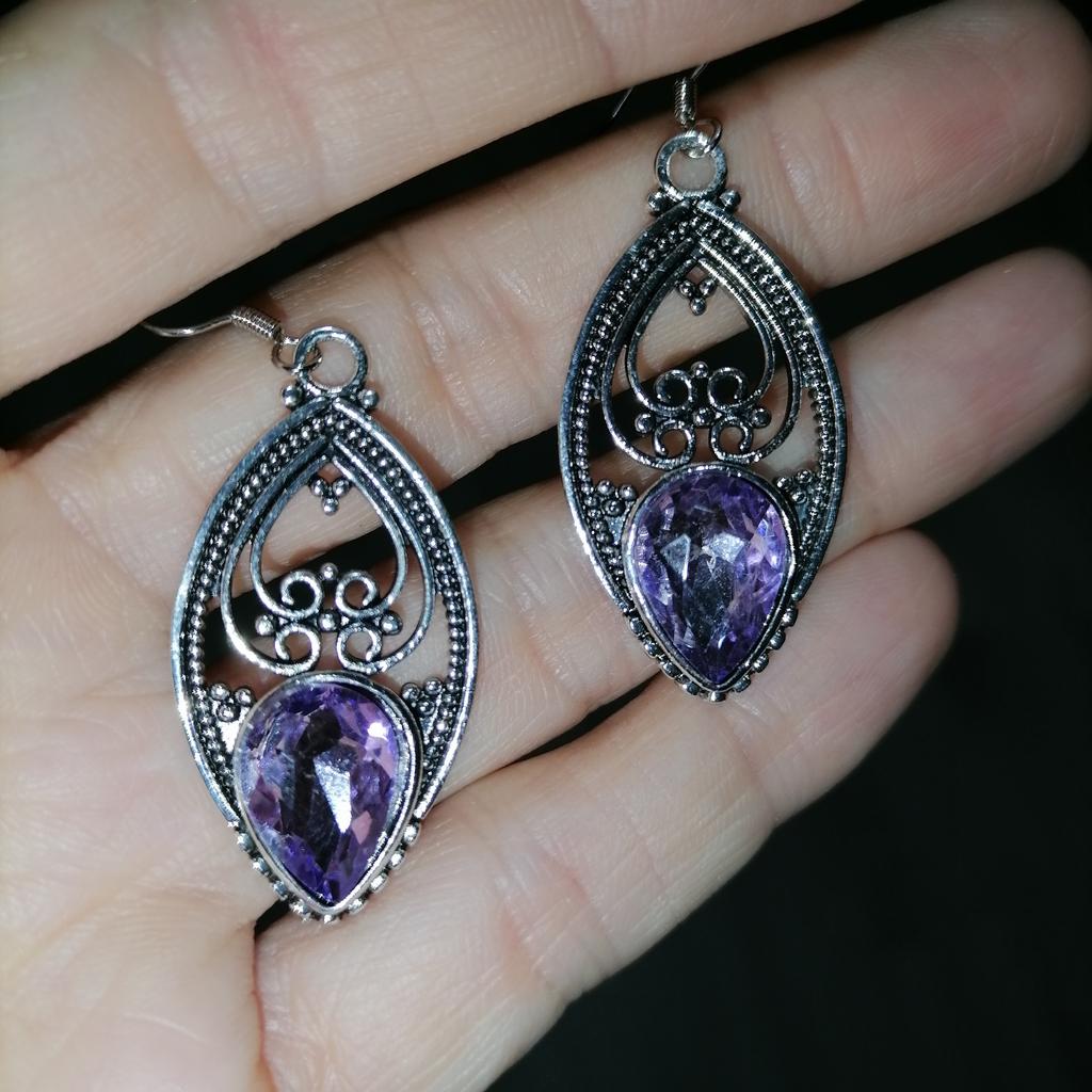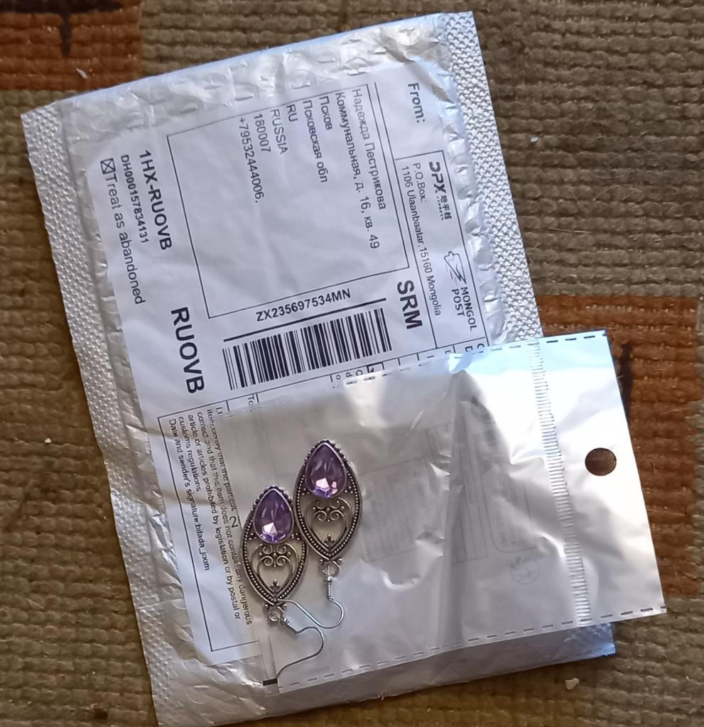 very delicate, beautiful light lilac color of the stone, the stone is glass, not acrylic, which also made me very happy)) quite large, 4x3.2 cm, but light on the ears, you can't feel them. very beautiful, I'm happy with the order) ❤️❤️