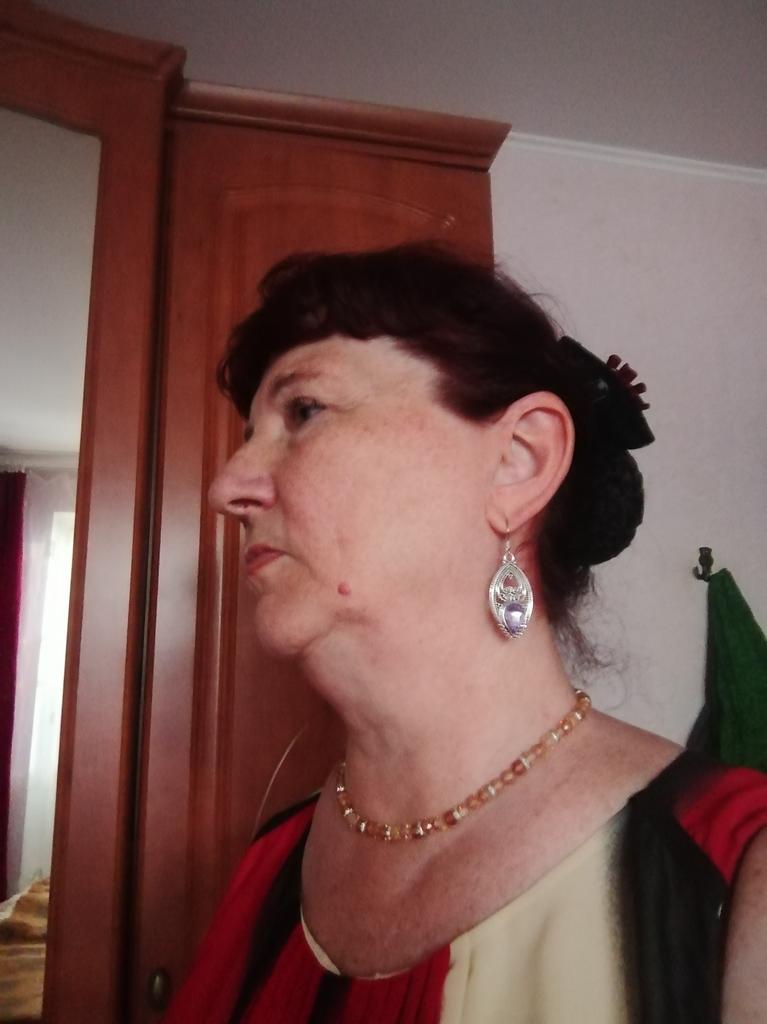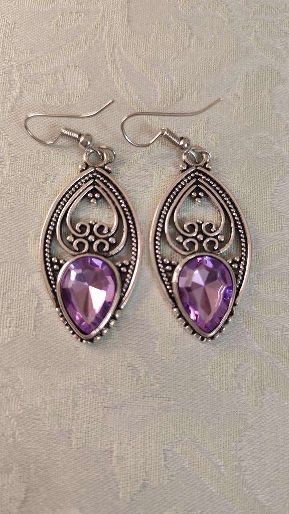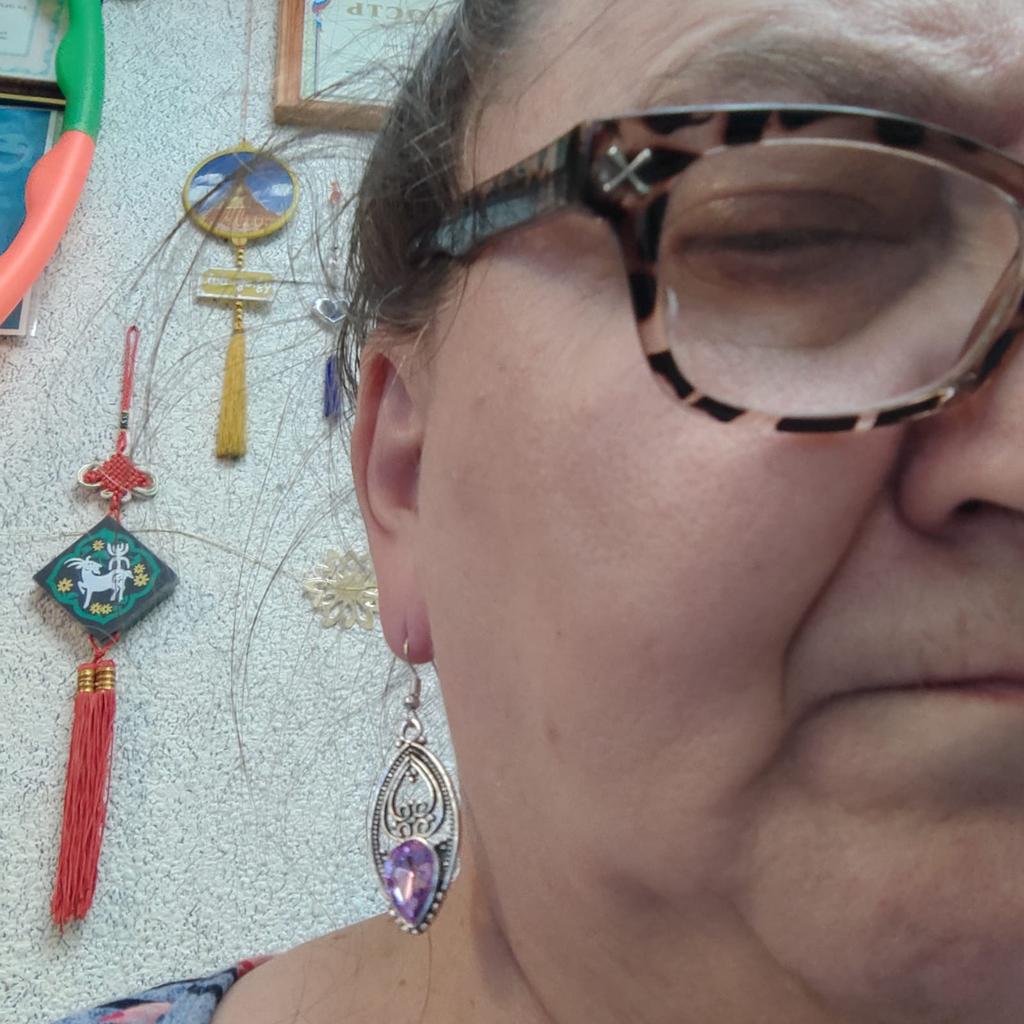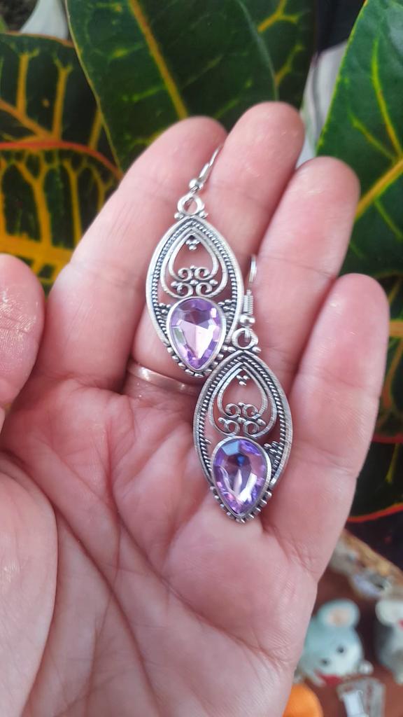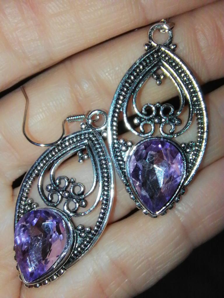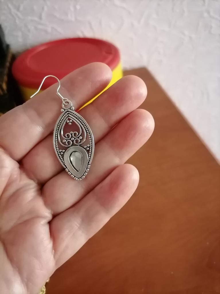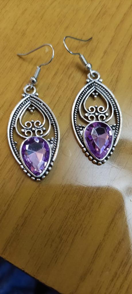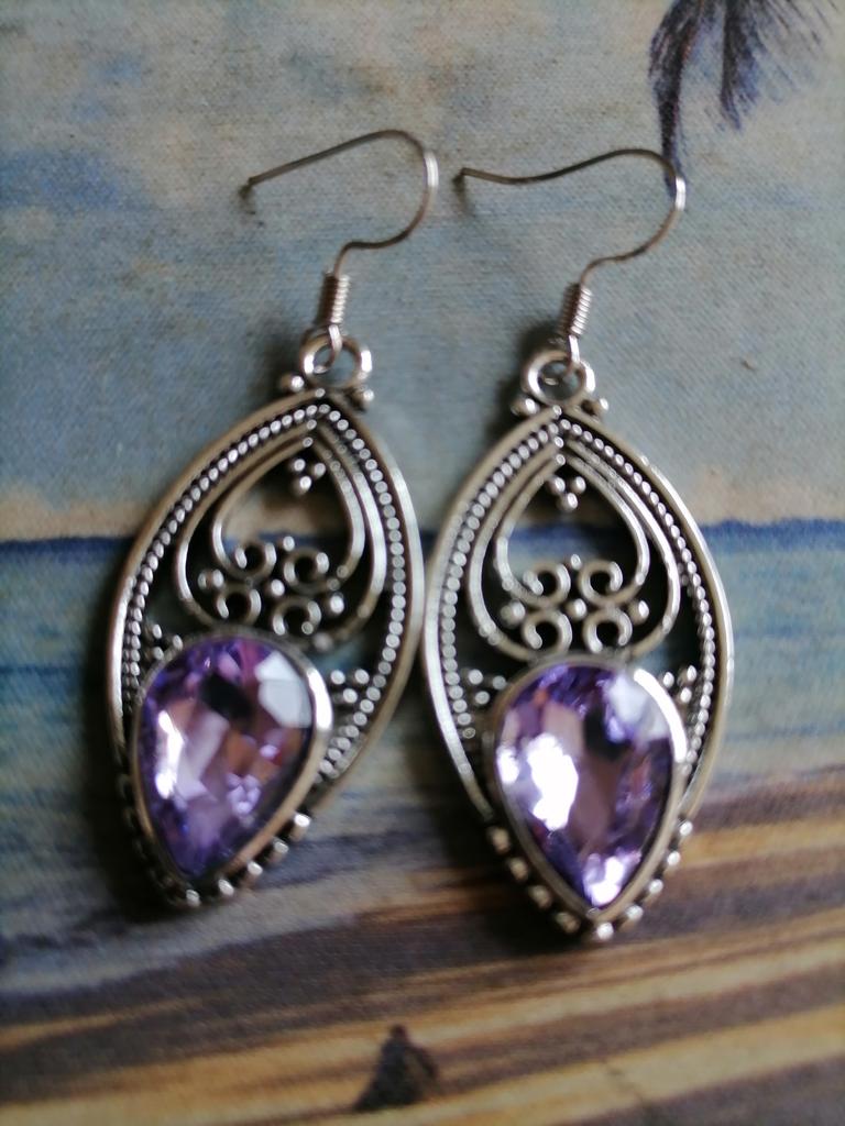 very delicate, beautiful light lilac color of the stone, the stone is glass, not acrylic, which also made me very happy)) quite large, 4x3.2 cm, but light on the ears, you can't feel them. very beautiful, I'm happy with the order) ❤️❤️