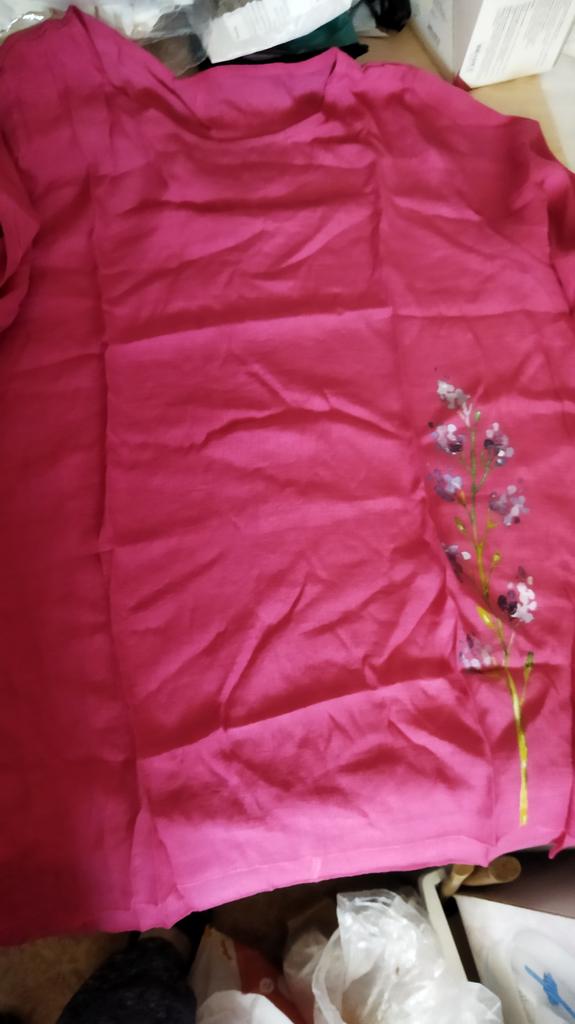 The blouse is of poor quality, with terrible seams. The neckline is poorly finished. The pattern is applied to the fabric rather roughly. It will clearly fall off after a few washes.