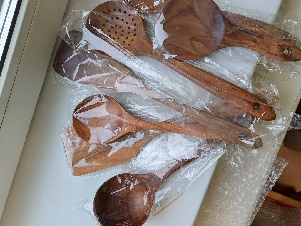 7pcs Thailand Teak Natural Wood Tableware Spoon Ladle Turner Long Rice Colander Soup Skimmer Cooking Spoons Scoop Kitchen Tool Set