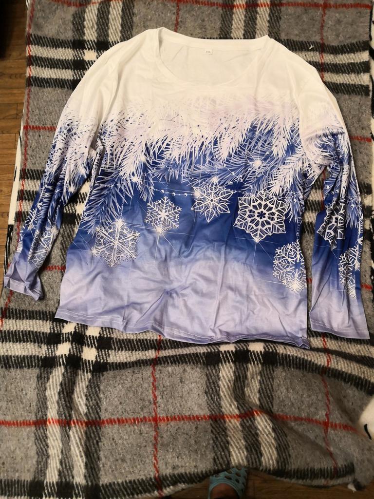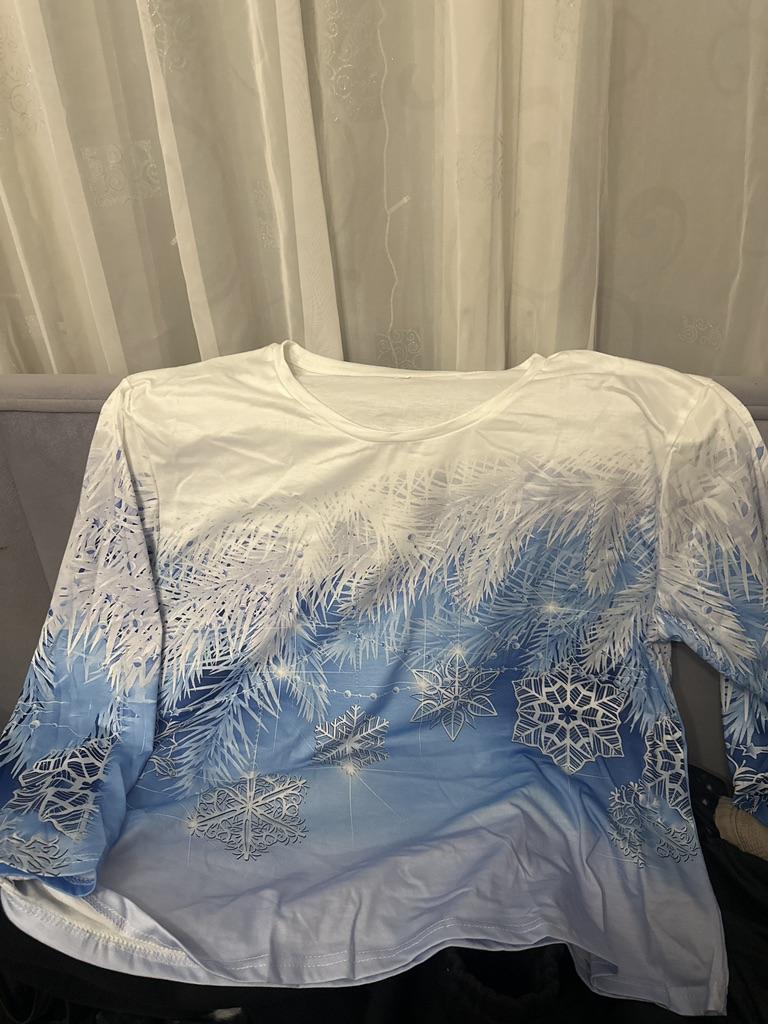 3D Print Green Snowflake Tshirts Ladies Tops Long Sleeve O-neck Pullover Femme T-shirts T Shirt For Women