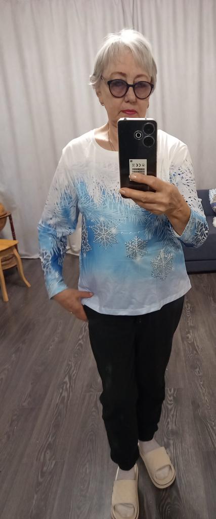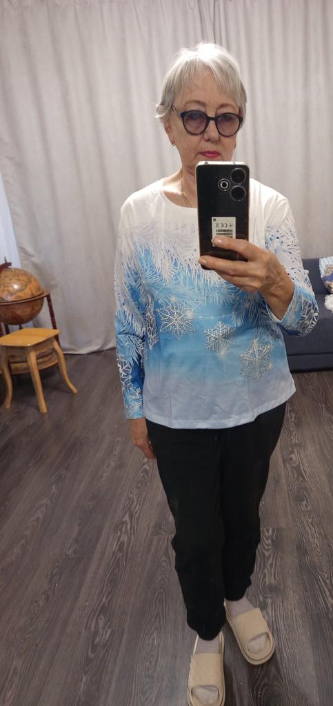 The blouse fit. I took XXXL for my size 54. It's dressy, just in time for the New Year.