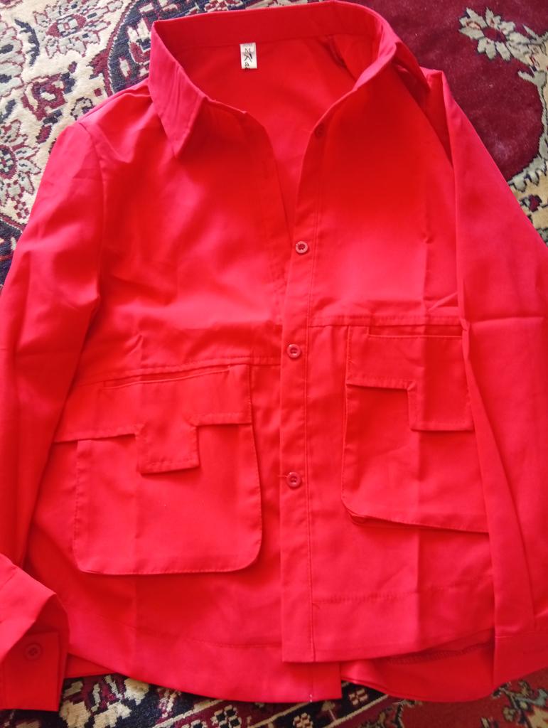 Jacket-shirt for warm season, the quality of the fabric, tailoring is excellent, the fabric is similar to thick satin, the style is unusual. The front is a little shorter than the back, the pockets are a little high, but this is the style, on the back there is a yoke at the waist, the sleeve is on the cuff, on the button. The shirt can only be worn loose, you can not tuck it in, those who are taller than 165 cm will have short sleeves.