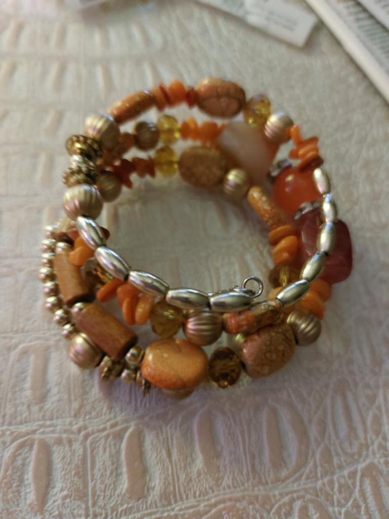 This is the third bracelet. I ordered orange, turquoise and white. White looks beautiful like natural stones. Turquoise and orange like cheap costume jewelry.