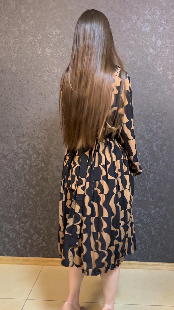 Elegant midi dress, pleated dress๐๐! Delivery time ๐: 21 days to Germany. โป๏ธScope of delivery: Included in delivery is a pleated dress ๐ in the appropriate size. The product is only available in brown. It is available in sizes from S to XL. I ordered the product in size S and the dress ๐ fits me great and the color is exactly as shown. ๐ค๐ค๐ค๐ I normally wear dress size 36 (S). I weigh 55kg and am 167cm tall. The dress is true to size. ๐Quality โป๏ธ: The dress is light and swings beautifully. Very pleasant on the skin. The dress has a sexy V-neck and belt, with elastic at the waist. You can use the dress ๐ for a party or daily use. I particularly like this neckline and also the leopard print. It looks extraordinary!!๐๐๐๐ โ ๏ธMaterial composition: polyester. But the material is very comfortable on the skin. I think the DRESS ๐ is simply mega๐๐๐๐๐ โณ๏ธSummary โณ๏ธ: A beautiful casual long-sleeved pleated dress with the belt ๐ that you can order in your normal size. I am very happy to recommend the product.,5 stars. ๐! Thanks Joom and the seller Hi Dawn!๐ค๐ค๐ค๐๐