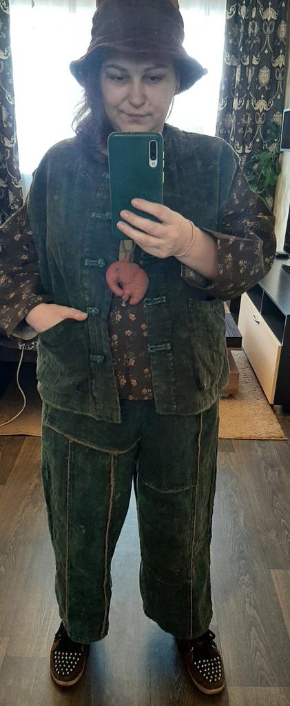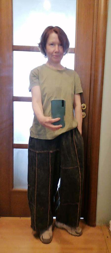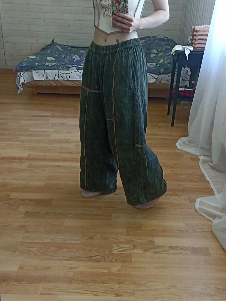 The trousers are super, two-layered, you can wear them in autumn too, cotton, they look great, the second ones, the first ones are green)