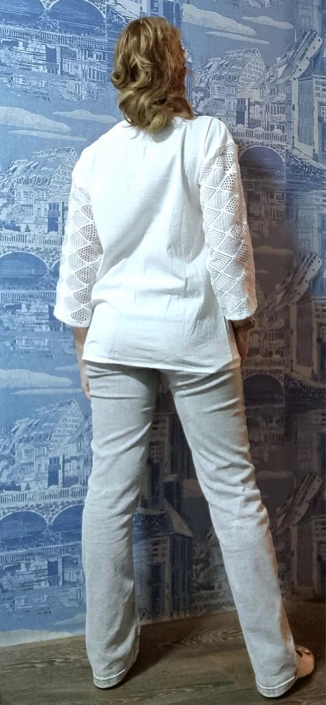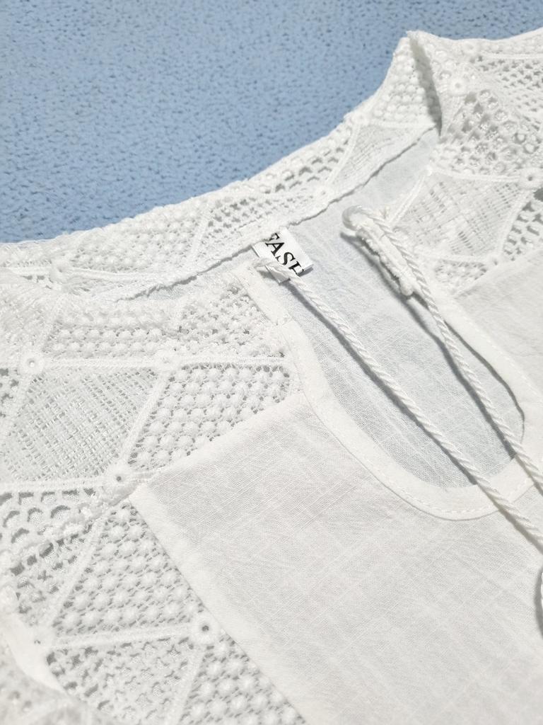 2024 Fashion Lace Blouse Women Tops Summer White Clothes Casual Loose Stitching Hollow V-neck Three Quarter Sleeve Cotton Shirt 242941
