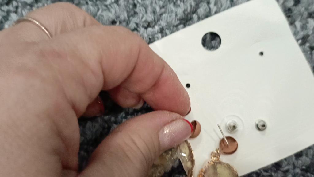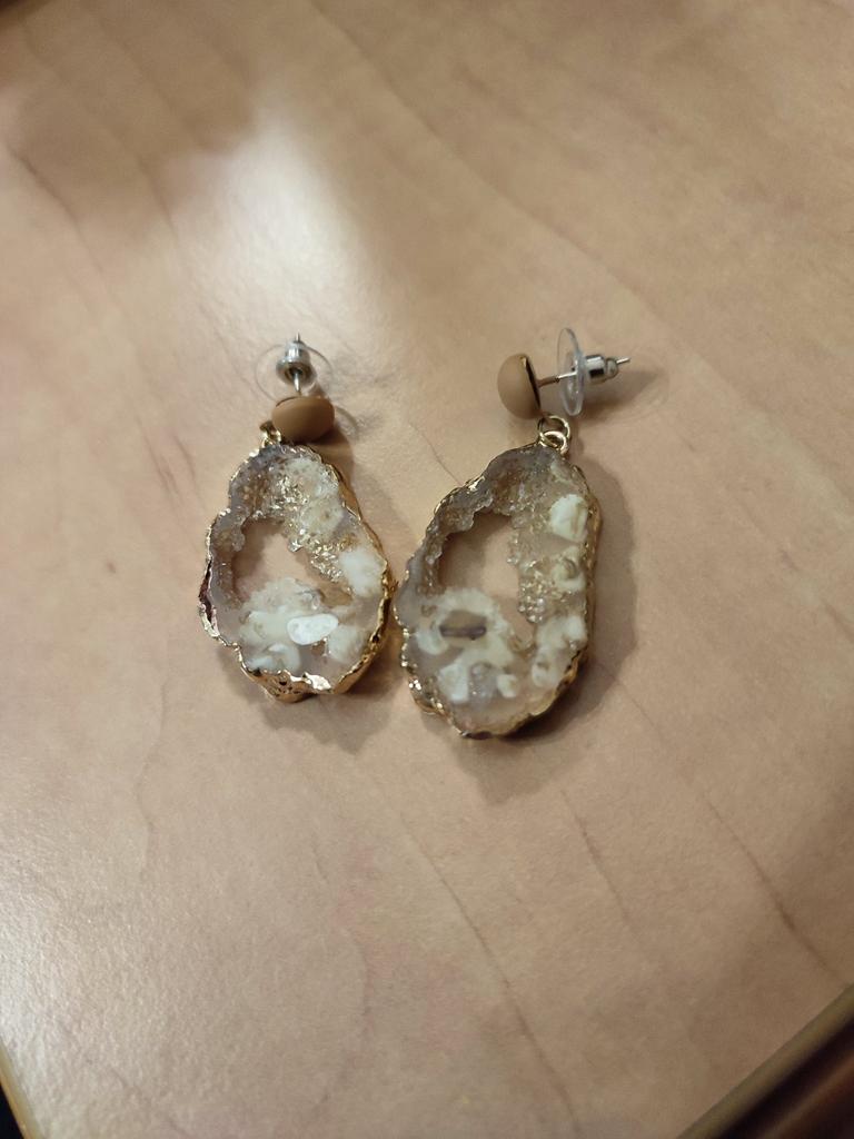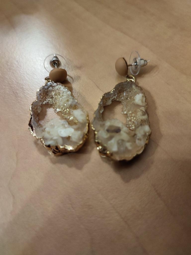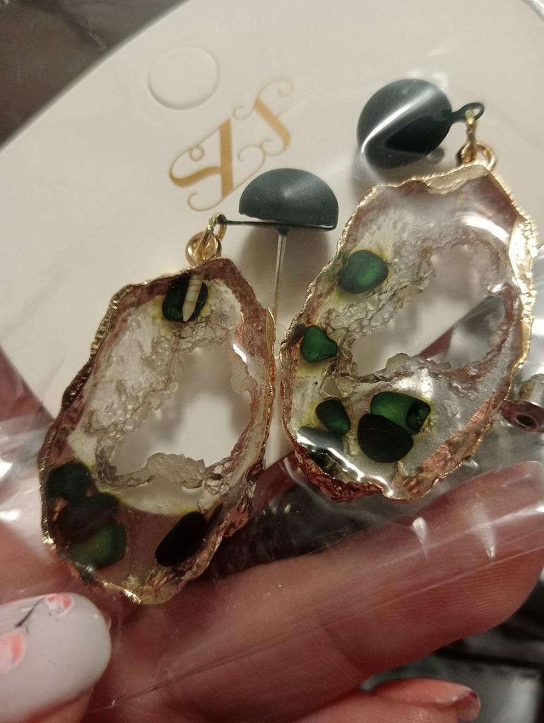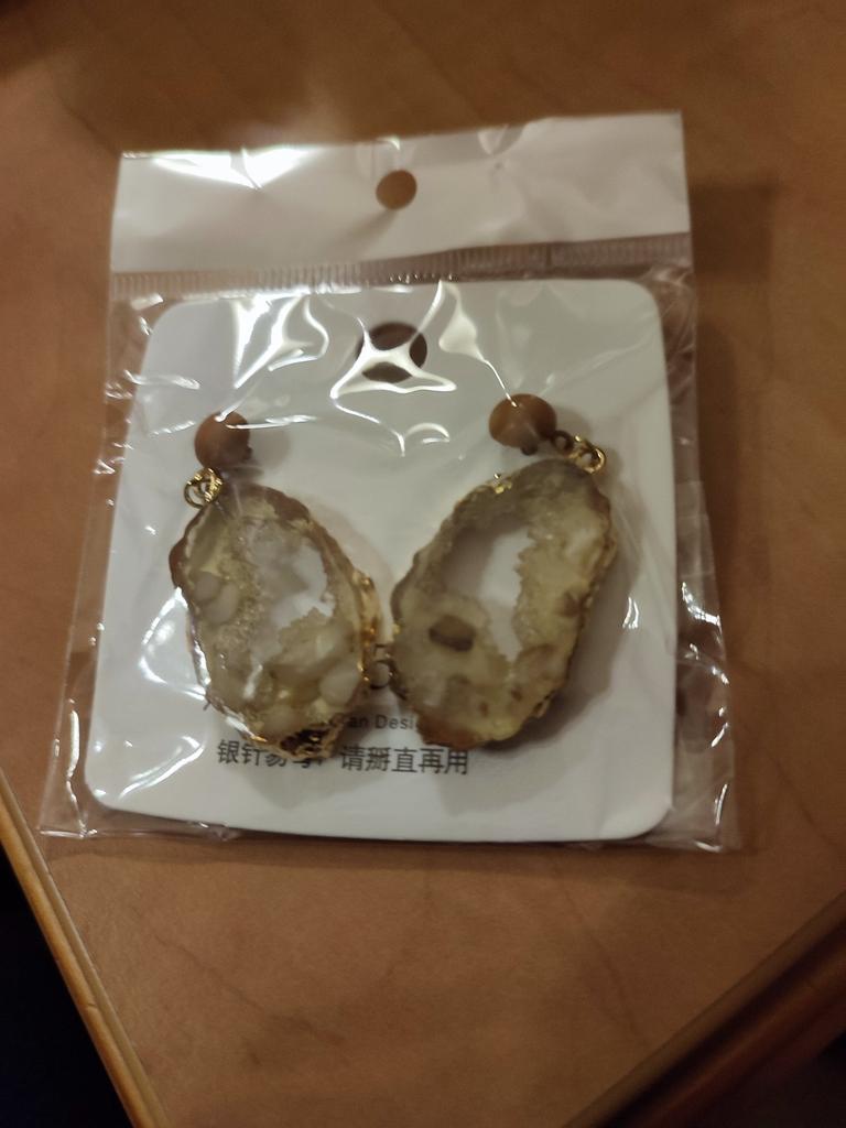 The design is not symmetrical. One earring is matte, the other is transparent. So-so. It won't be very noticeable under the hair.