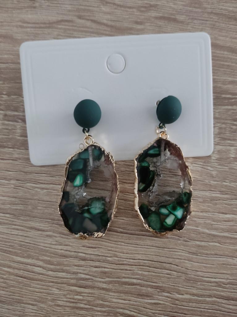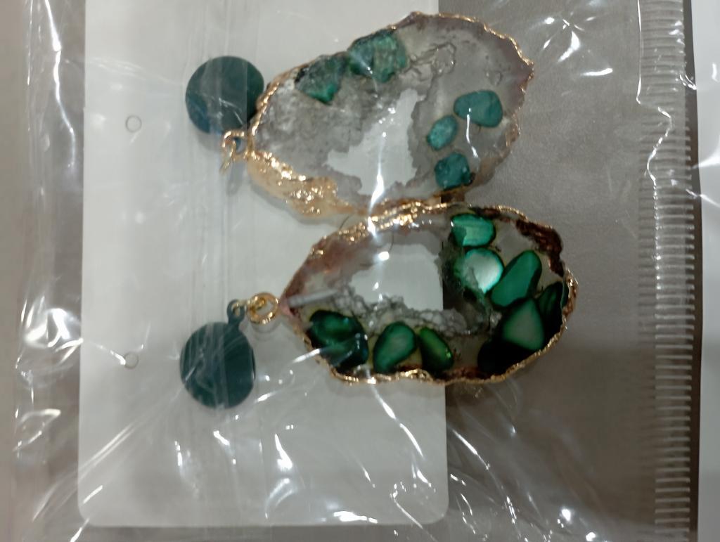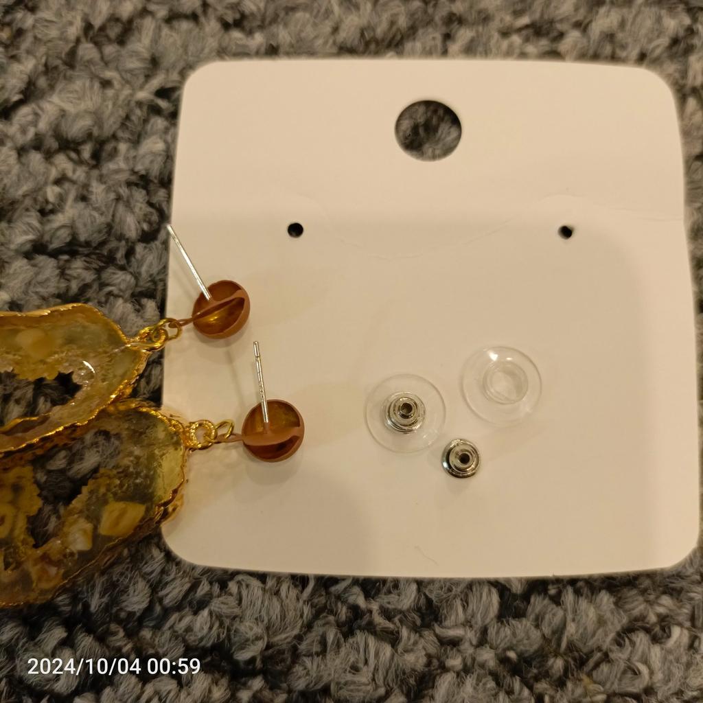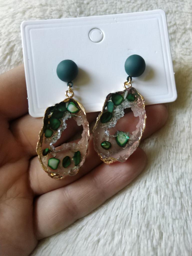 The design is not symmetrical. One earring is matte, the other is transparent. So-so. It won't be very noticeable under the hair.