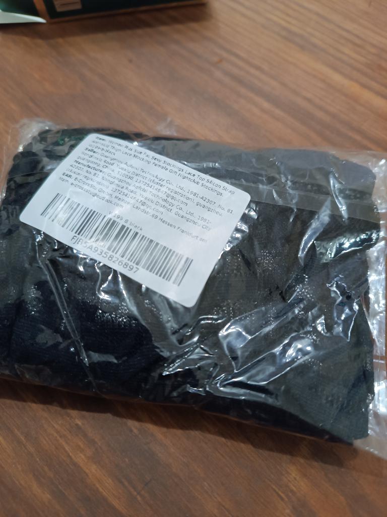 Packed terribly in a small bag. Silicone elastics barely hold. Stockings are very thin.