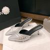 Fashion New Heels Pumps Slippers For Ladies 2024 Luxury Shoes Female Fashion Buckle Pointed Toe Heeled Women Mules Slides Sandals