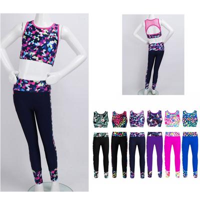 2Pcs Elastic Waistband Long Leggings Pants + Sleeveless Mesh Racer Back Tanks Tops Digital Print Gym Dancewear Outfit