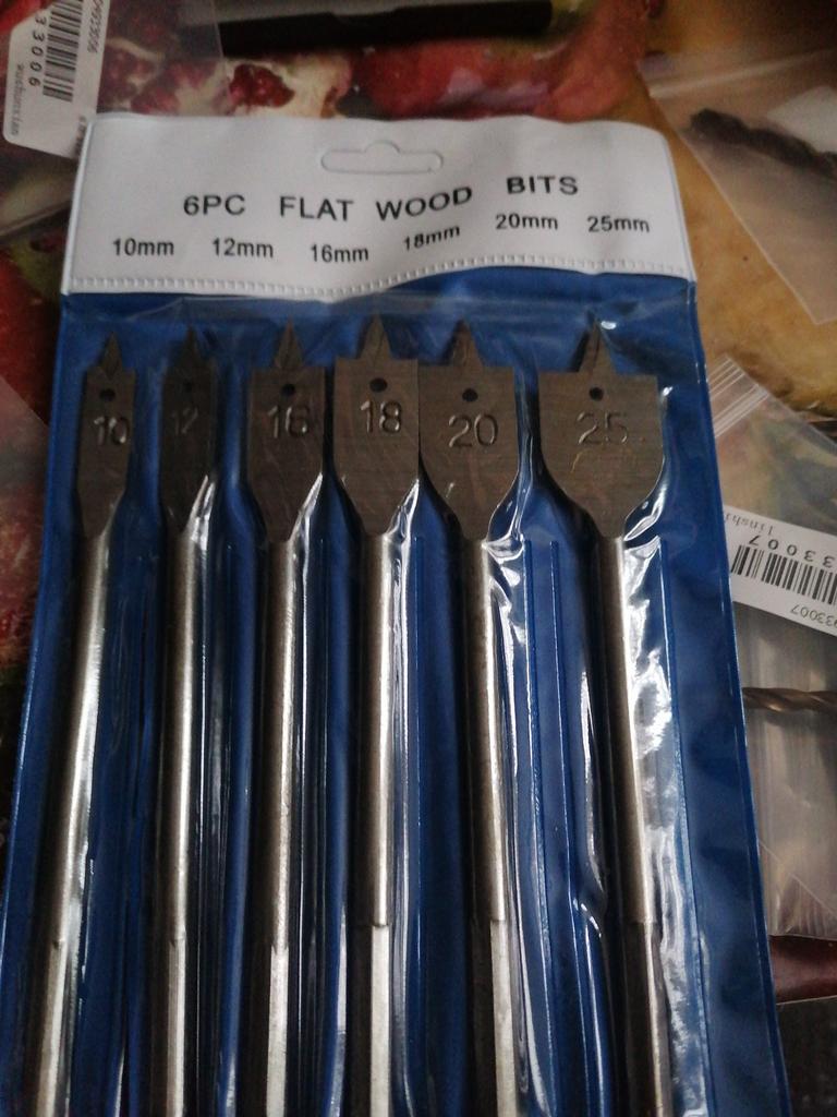 A wonderful set of spade bits for wood. I bought it to drill plywood for formwork. With a hex shank.