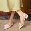 Women's Temperament Sandal 2024 Summer New Fashion Elegant Black Pointed Thick Heel Anti-Slip Comfort Butterfly Knot Women Shoes