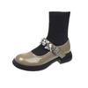 Fashion Ladies Shoes On Sale 2024 Fashion Sleeve Women's Pumps Autumn Round Toe Rhinestones Solid Short Barrel Low-heeled Socks Boots