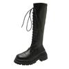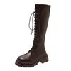 Fashion 2024 High Quality Shoes for Women Lace Up Women's Boots Autumn Round Toe Solid High Tube Block Heel Fashion Boots Zapatos Mujer