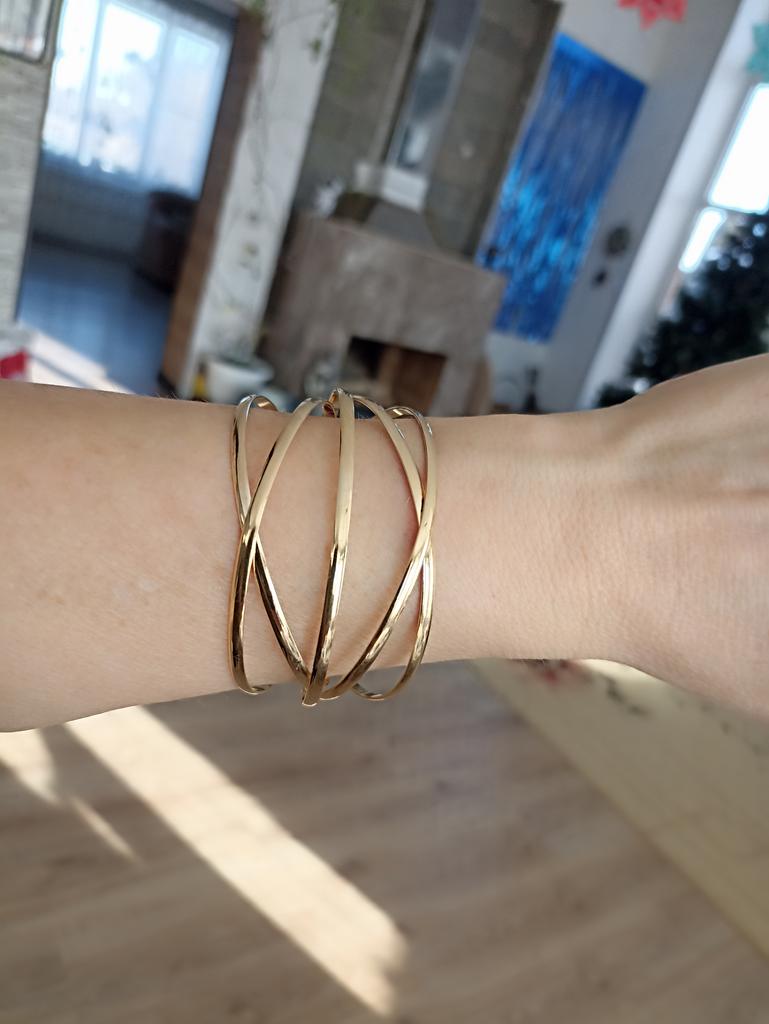 A beautiful bracelet. Looks like gold! Lightweight! Will look chic on a slender wrist!!!