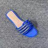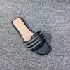 New Crystal Stone Stripes Slippers for Women Shoes Fashion Luxury Designer Flat Slides Rhinestone Sandals Chaussure Femme
