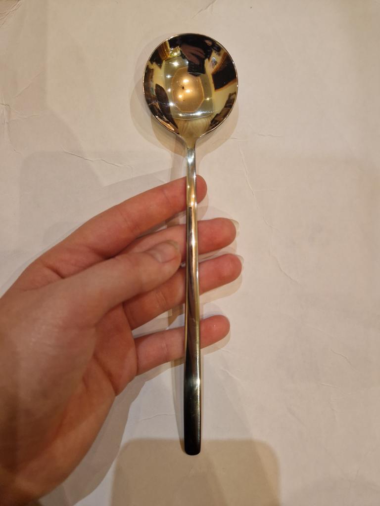 cute, small Korean spoon. pleasant to the touch, has a golden sheen.