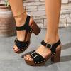 Women's Shoes Fashion Buckle Strap Women's Sandals Peep Toe Office and Career Summer Plus Size Solid Heels Women