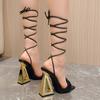 Women's Sexy Fashion Coarse Heel Versatile Open Toe Cross Strap High Heel Sandals