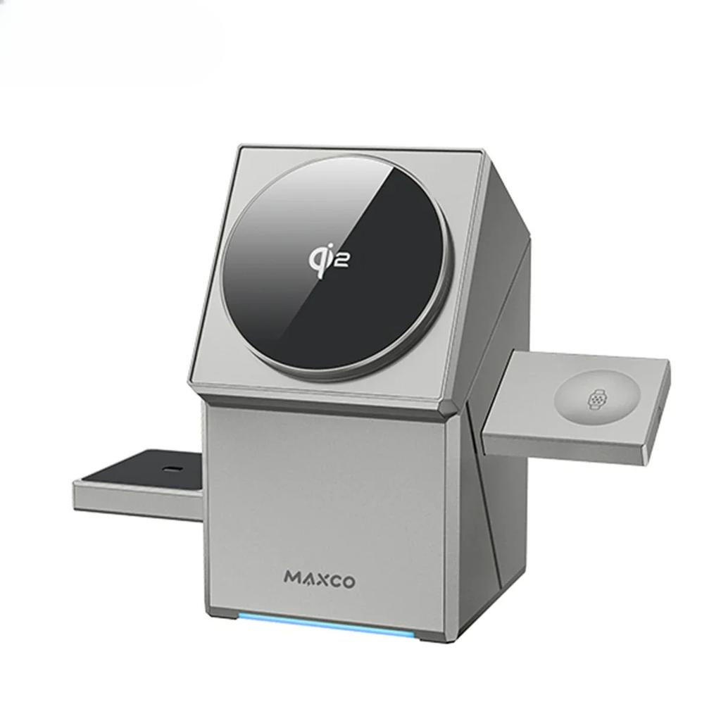 VWAR | Maxco Qi2 Certified 3-in-1 Wireless charger with Auto-Rotating Phone Dock compatible with MagSafe magnetic fast charging for phones,  watch, and earbuds