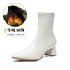 High-heeled Short Boots Women's Spring and Autumn Single Boots 2024 New Women's Boots Medium Tube Thin Pointed Fashion Boots Thick-heeled Leather Boo